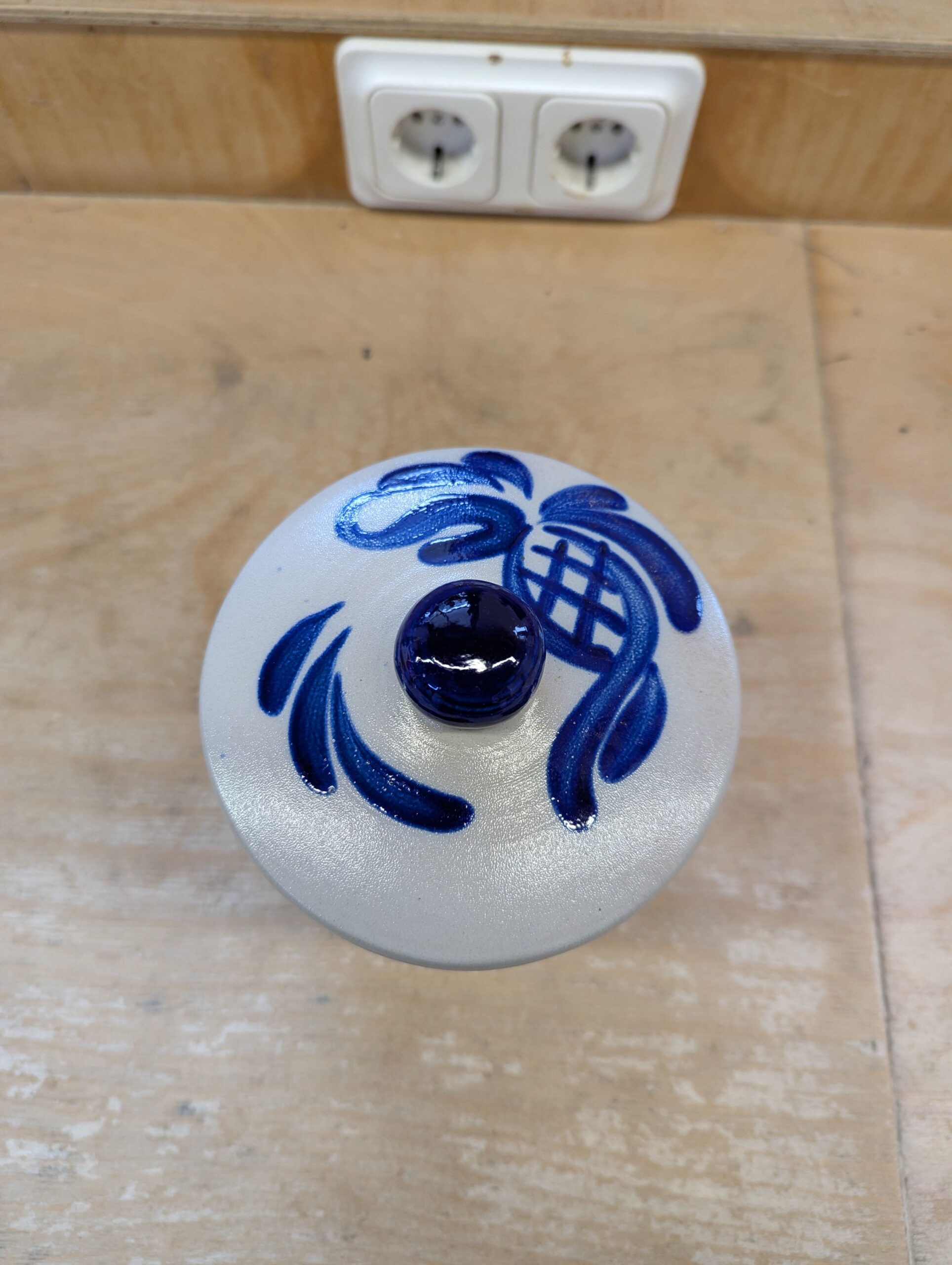 Tischabfalleimer mit gerader Form und Deckel aus Steinzeug mit Salzglasur